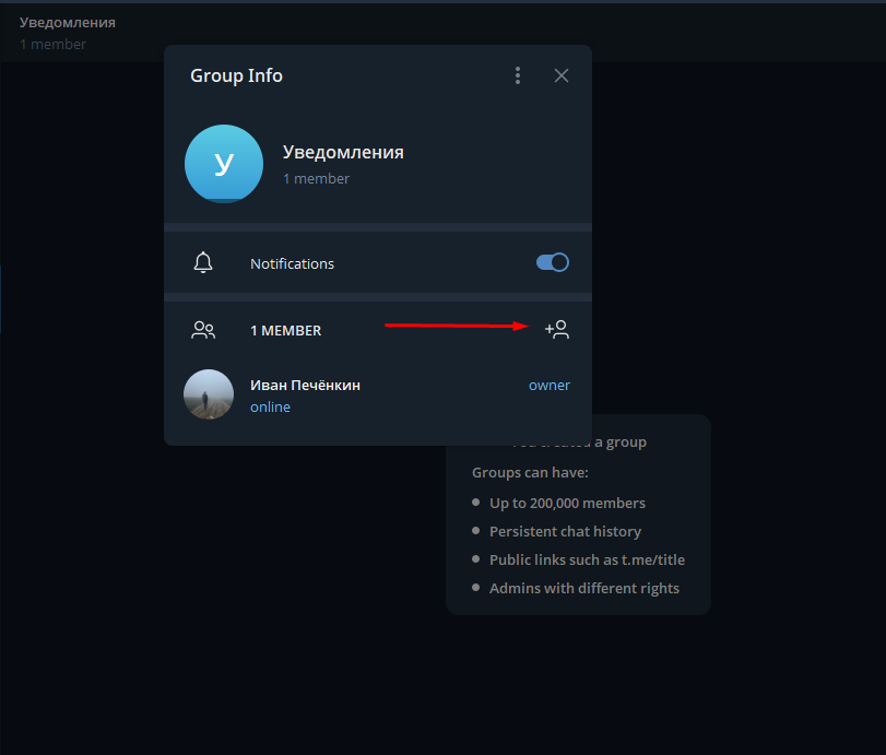 Создание группы и подключение бота