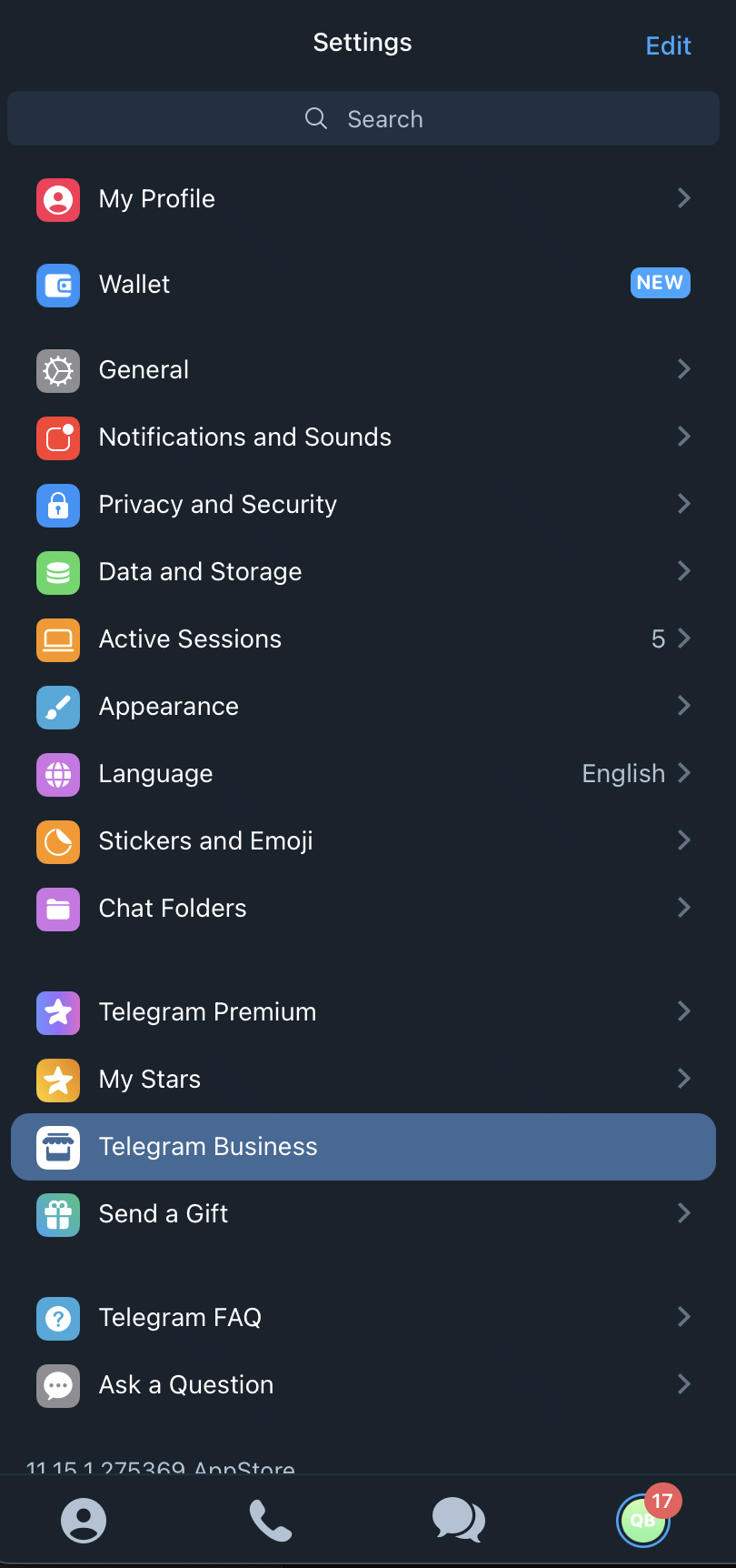 - В приложении Telegram перейдите в настройки и выберите "Telegram Бизнес"