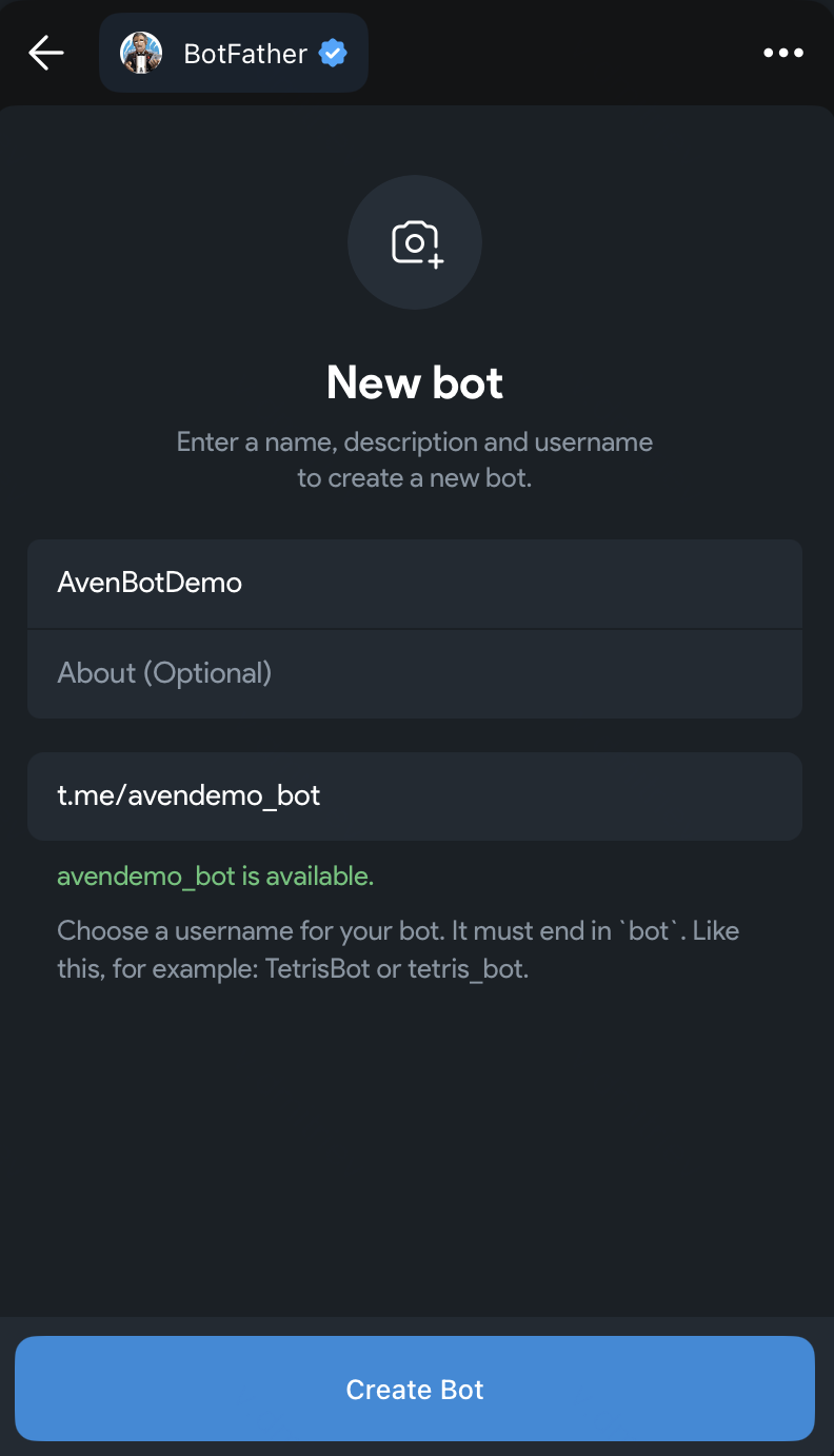 - Нужно заполнить все поля, после нажать на кнопку "Создать бота"